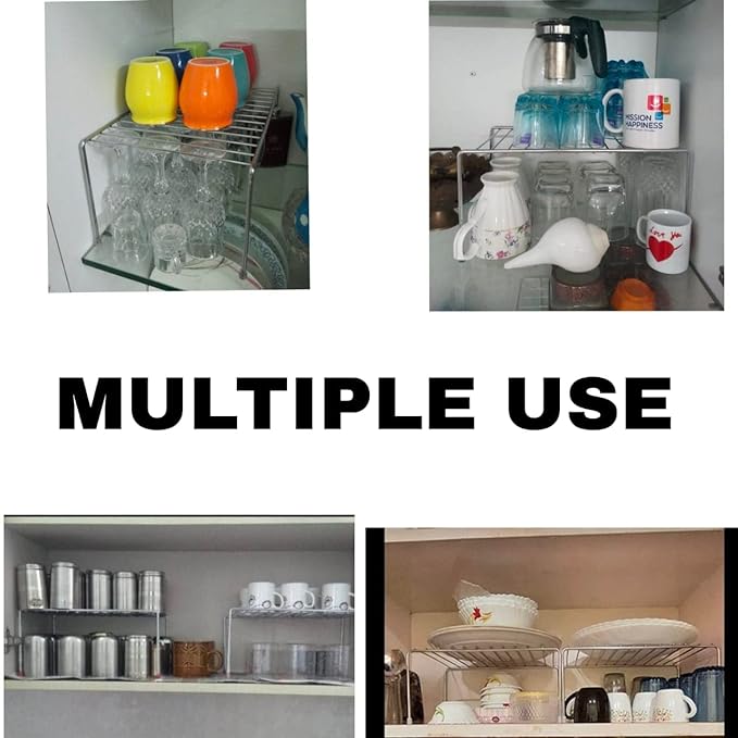 12FOR COLLECTION 2pcs Stainless Steel Kitchen Dish Rack Expandable Storage Shelves for Kitchen Cabinets Multipurpose Organizer Extend Up to 580 mm with Anti-Rust Nano Coating (Pack of 2)