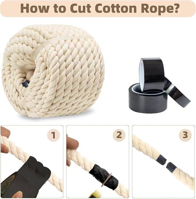 2 CM Thick Strong Cotton Rope for Hanging Craft Climbing Swing Tug of War Gym Decoration Nautical, Landscaping, Railings, Hammock ETC (10 feet)