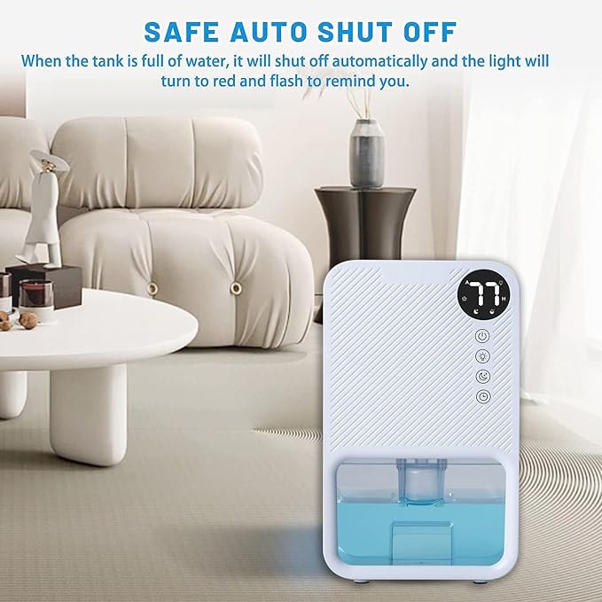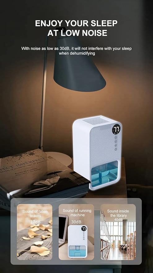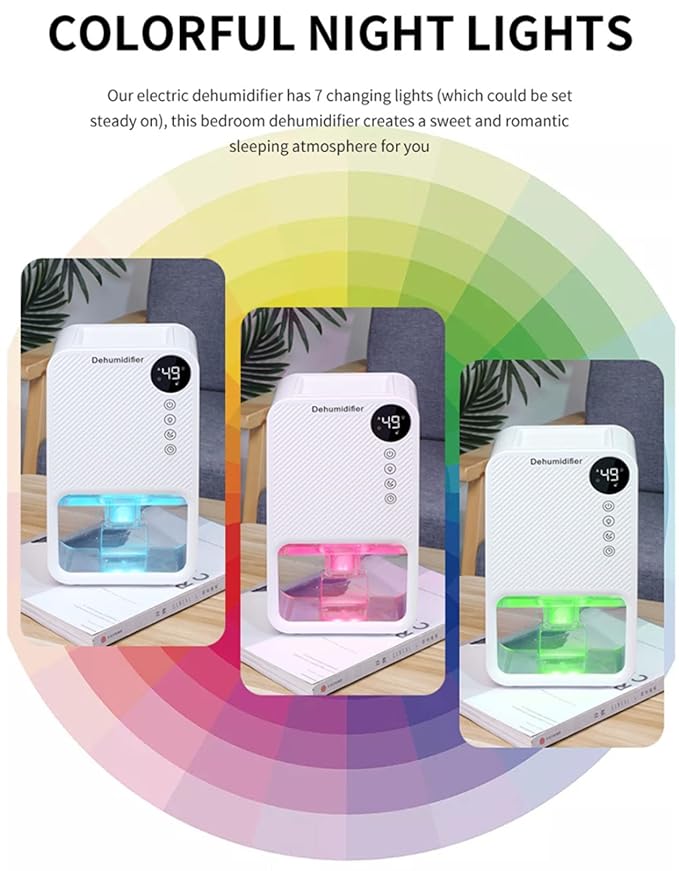 24×7 eMall Electric Dehumidifier For Small Rooms And Offices, 1100ML Tank With LCD Display And 7 Ambient Lights, Auto Shut Off Dehumidifier White – 22.5cm x 15cm x 11cm