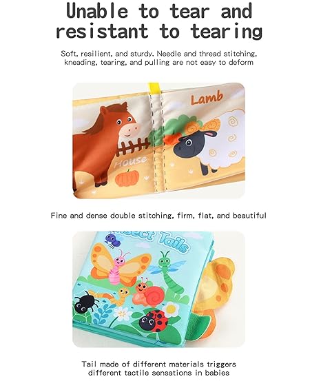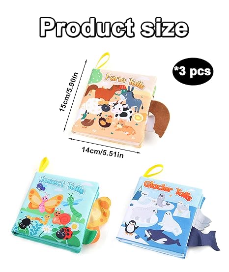 3PCS Cloth Books for Babies, Crinkle Pages for Sensory Play, Soft Peek a Boo Cloth Books for Babies, Toddler Toys, Cloth Books for Babies 6-12 Month Old