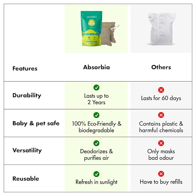 ✅ VERSATILE USAGE: The Absorbia Charcoal Bag Versa is suitable for use in rooms, cupboards, bedrooms, and even in cars. Designed to cater to different needs, this product is perfect for kids, sons, daughters, and anyone looking to reduce moisture in their living spaces. It is a convenient and efficient solution for dehumidification in various locations.