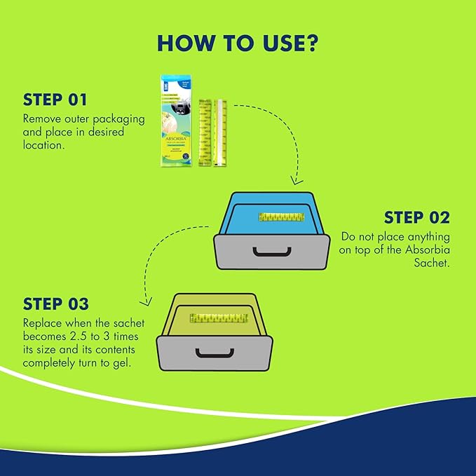 TRUSTED BY MILLIONS – Over 20,00,000 users trust ABSORBIA to protect their belongings from moisture damage.