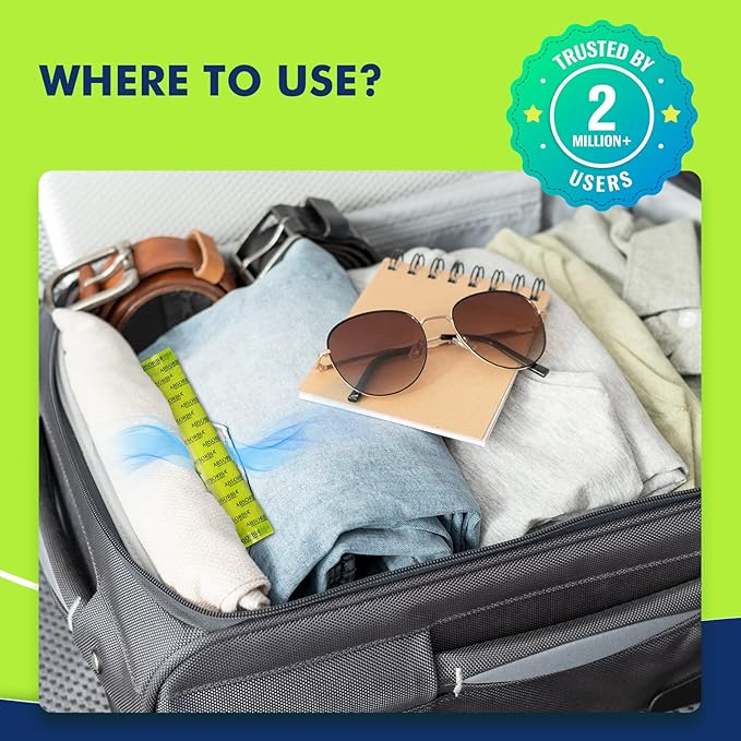HOW TO USE – Simply remove the outer packaging and place the sachet with its white side facing upwards. Use only one pouch per storage space. Use two or more pouches for large spaces. Lasts up to 30 days depending on humidity conditions.