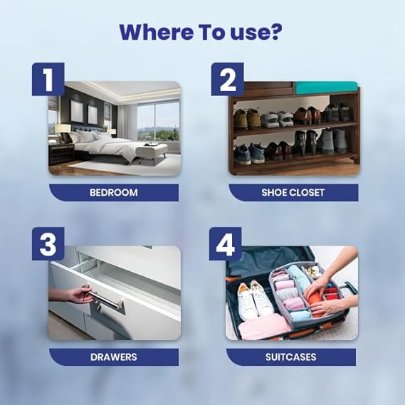 Long-lasting Performance: Enjoy up to 30 days of continuous moisture absorption, ensuring prolonged protection for your wardrobes, drawers, suitcases, and shoe closets.