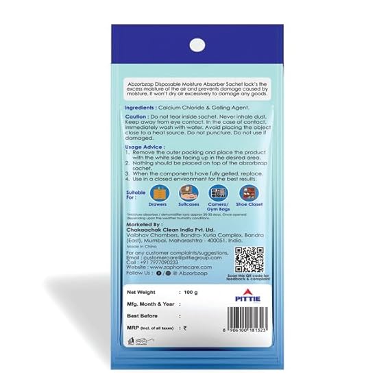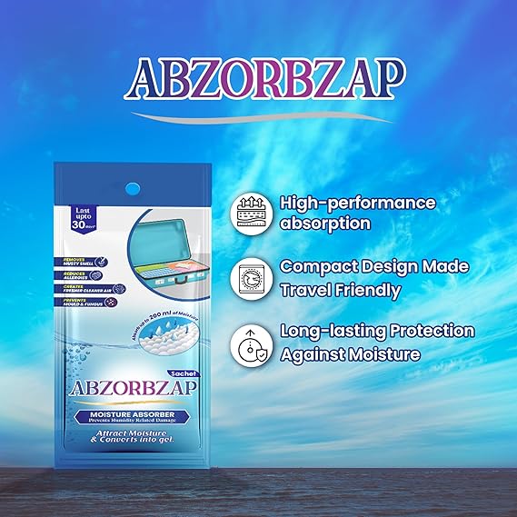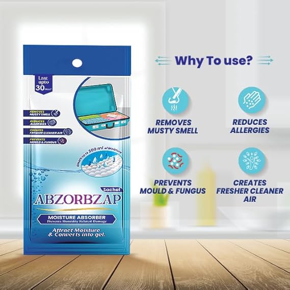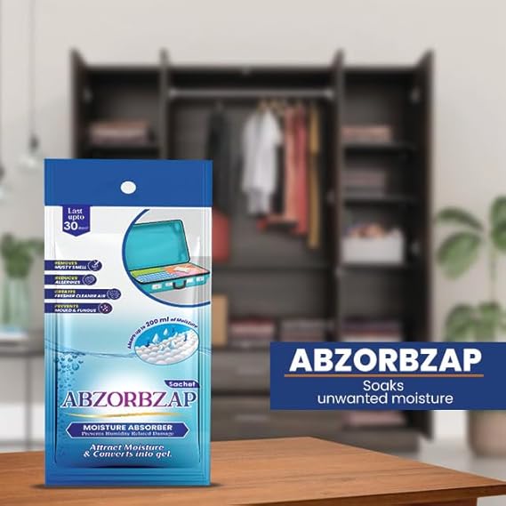 Abzorbzap Moisture Absorber with activated charcoal |Absorbs 200ml of moisture | Dehumidifier for Bags, Suitcases & Drawers | Protects against Moisture, Mold, Fungus & Bad Odor |