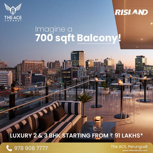 Apartment Ace Risland 2&3 BHK starts from 91* Lacs Jumbo Realty August 25, 2022 0 Comments Imagine a 700 sqft Balcony! Luxury 2 &3BHK starts from 91 lakhs* at The Ace, Perungudi. Share Link Tags: ace, Apartment, Luxury, perungudi, Real Estate, risland Post navigation PrevArun Excello Sindhura Siruseri Omr NextG Square Supreme Plots in Thriunagar, Trichy starting from Rs. 38 Lakhs.