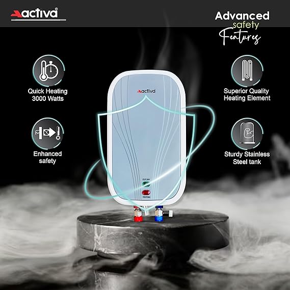 ACTIVA 3 Litre INSTANT 3 KVA (0.8 MM THICK) Special Anti Rust Coated 304L Pure SS Tank Volcano Geyser With 5 years warranty,Wall