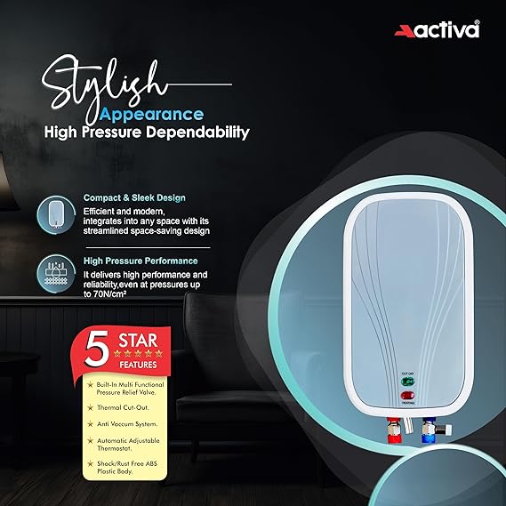 ✅4 WAY PROTECTION SAFETY; The geyser built with all the 4 safety features included automatic thermostat, automatic thermal cutout, pressure release valve and fusible plug which provides long lasting life to your geyser and proper protection.