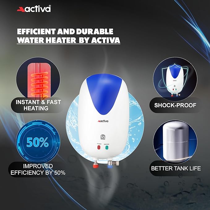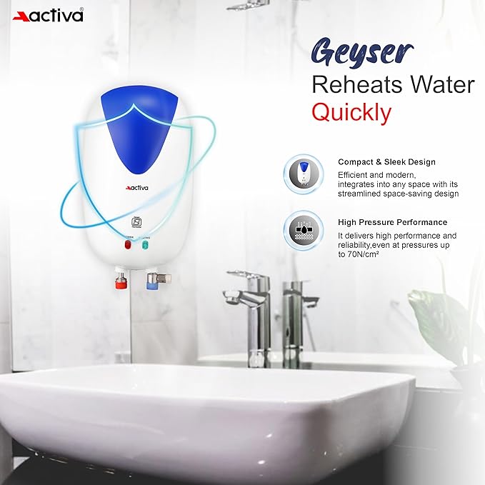 ACTIVA Instant 3 Ltr 3 Kva Special Anti Rust Coated 0.7 Mm Ss Tank Wall Mount Geyser,Full Abs Body Premium(White)Come With 5 Years Warranty