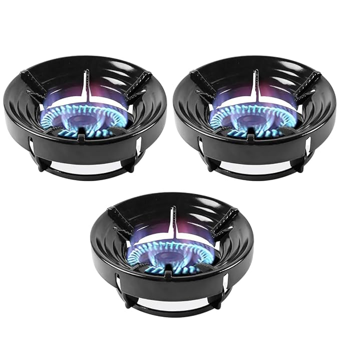 Adbeni Imported Steel Windproof Gas Saver Burner Stand | Energy Saving Hood & Stove Protector for Woks | Durable Gas Saviour Bracket Reducer, Black (Pack Of 3)