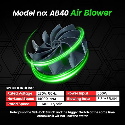 AEGON Ab40 Made in India Multipurpose Nylon Electric Air Blower for Home/Office/Car/Pc/Computer Dust/Garage/Patio/Garden Leaf/Trash Cleaning (550W, 3.8 m3/min, 14000 RPM, Green)