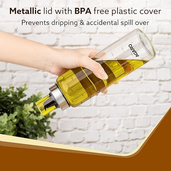 AGARO Elite Borosilicate Glass Oil Dispenser With Capacity Markings, Pack of 2, 500 Ml each, Metallic Lid, Oil Bottle Jar, Transparent