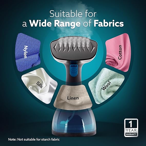 AGARO Signify Handheld Garment Steamer, Wrinkle Remover, Iron, Fast Heat, Ceramic Steam Nozzle, 1500W, 260 ML Water Tank, Detachable Fabric Brush