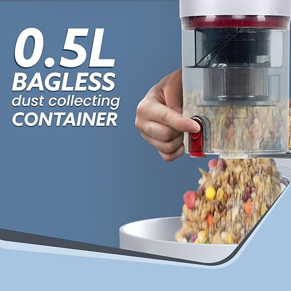 0.5 Litre bagless dust collecting bin is designed for hygienic removing and emptying with one hand