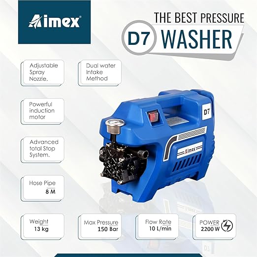 About this item High performance copper motor with metal gears and pump and Pressure of 150 bar.Better performance | 2200 Watts Max. powerful copper motor and with Max flowrate 10L/min Low-noise operation: autostop technology switches the motor and pump off automatically when the switch is released