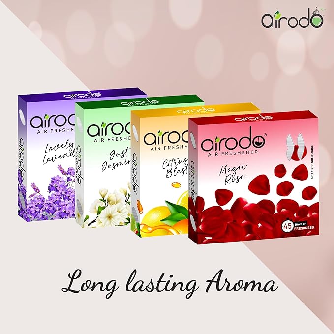 AIRODO Air/Room Freshener Magic Rose, Just Jasmine, Lovely Lavender & Citrus Blast Blocks with long lasting Automatic Fragrance Booster Lasts Up to 30 Days (Pack of 4,50gm)