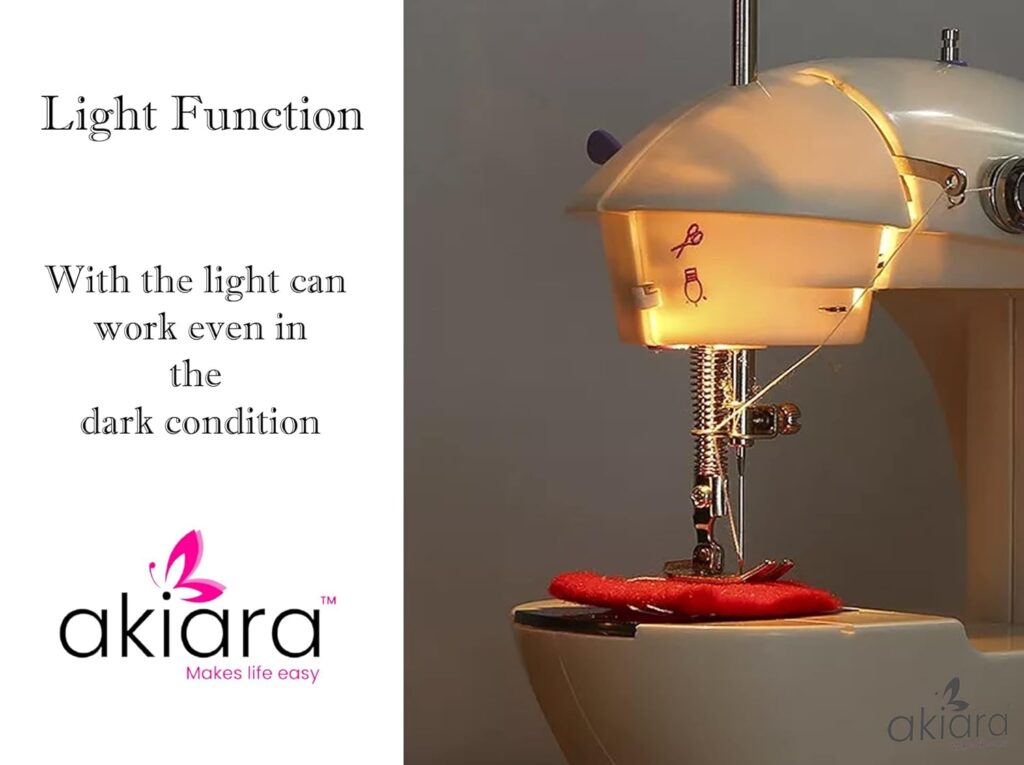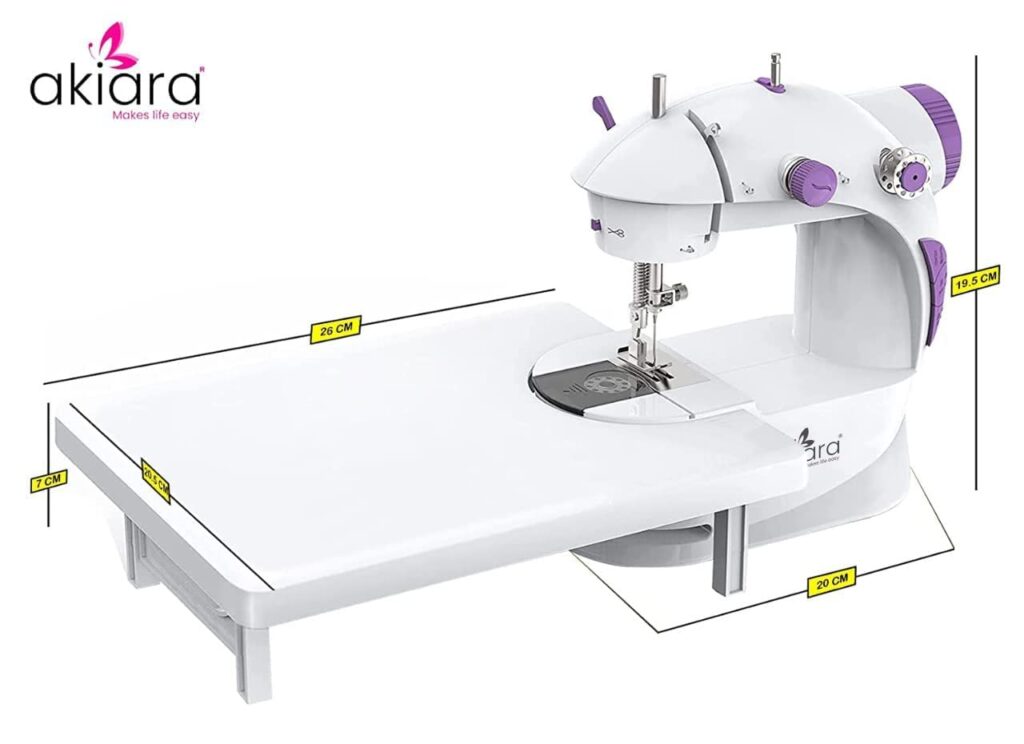 Akiara – Makes life easy Mini Sewing Machine with Table Set | Tailoring Machine | Hand Sewing Machine with extension table, foot pedal, adapter, White (With KIT)