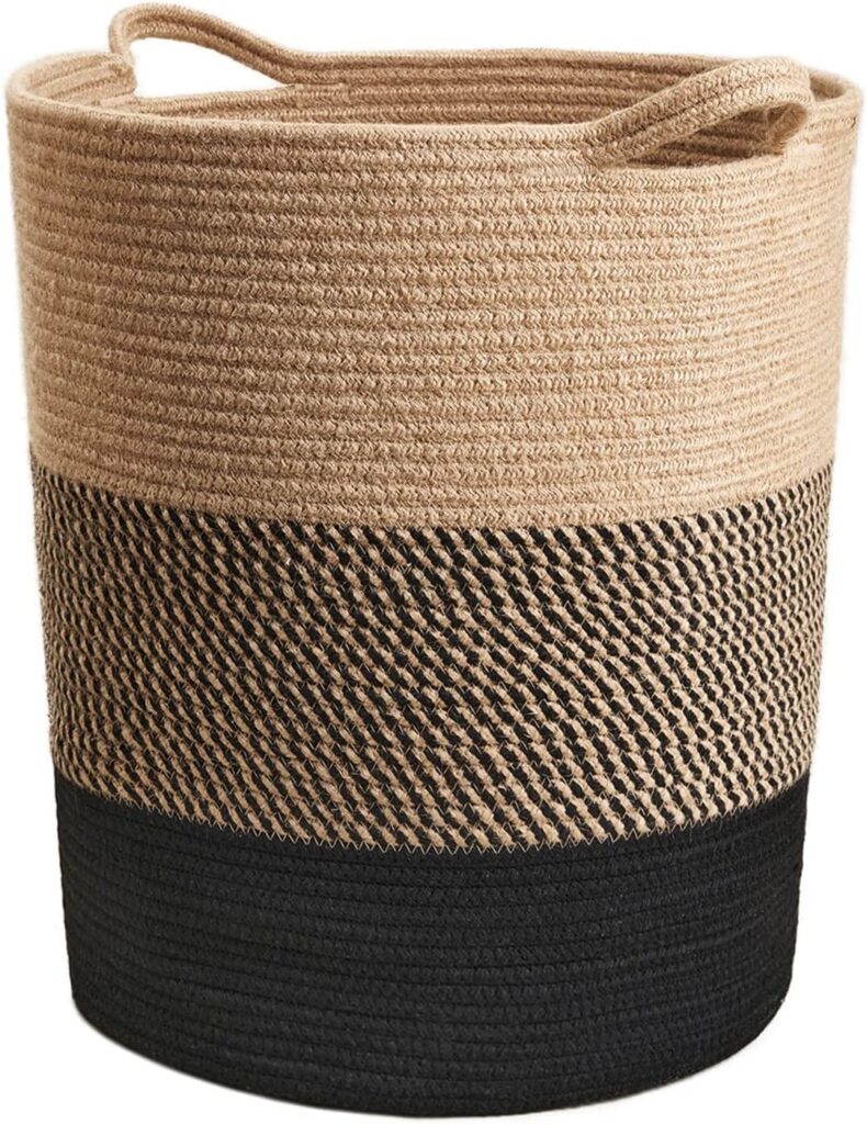 ALBY Large Jute Rope Oval Basket – Tall Laundry Basket Hamper For Dirty Clothes Woven Jute Storage Basket For Blanket In Living Room Toy Basket For Nursery Storage,17.8″ X 15.8″ X 13.8″,Multicolor