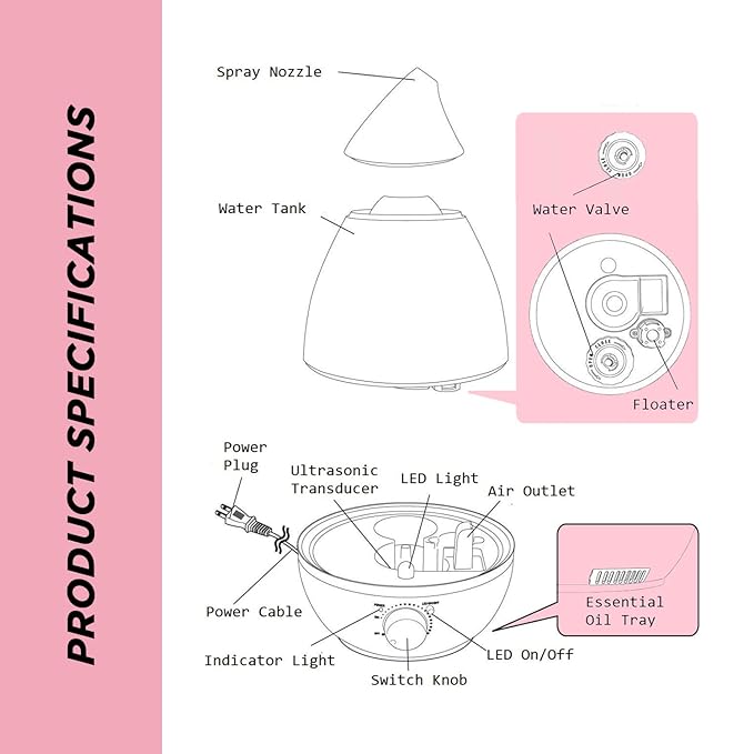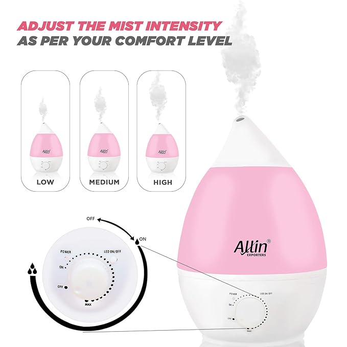 Allin Exporters J66 Ultrasonic Humidifier Cool Mist Air Purifier for Dryness, Cold & Cough Large Capacity for Room, Baby, Plants, Bedroom (2.4 L) (1 Year Warranty)