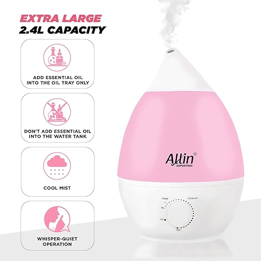Allin Exporters J66 Ultrasonic Humidifier Cool Mist Air Purifier for Dryness, Cold & Cough Large Capacity for Room, Baby, Plants, Bedroom (2.4 L) (1 Year Warranty)