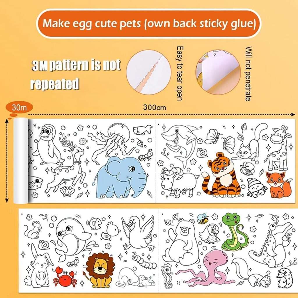 Alokik Enterprise Drawing Paper Roll for Kids, 30 x 300 Cm Large Coloring Poster for Toddlers, Art Paper, Kids Coloring Drawing Paper Roll Best Birthday Gift Kids【 Mix-Design 】