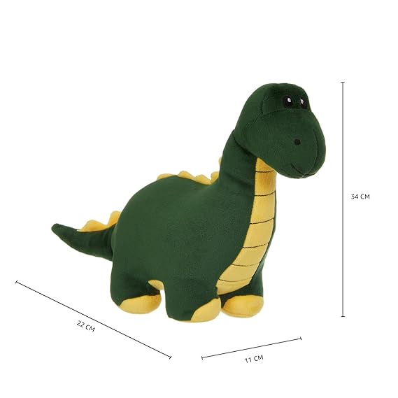 Amazon Brand – Jam & Honey Dinosaur, Cute, Plush/Soft Toy, Suitable for Boys, Girls and Kids, Super-Soft, Safe, 34 cm (Green & Yellow)