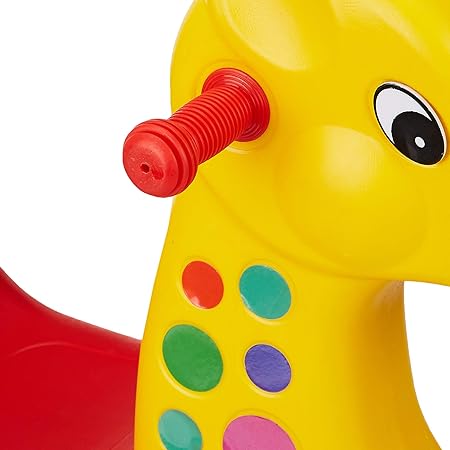 This Jumbo Giraffe Ride On rocker comes with a sturdy seat, playful design, and a vibrant giraffe motif