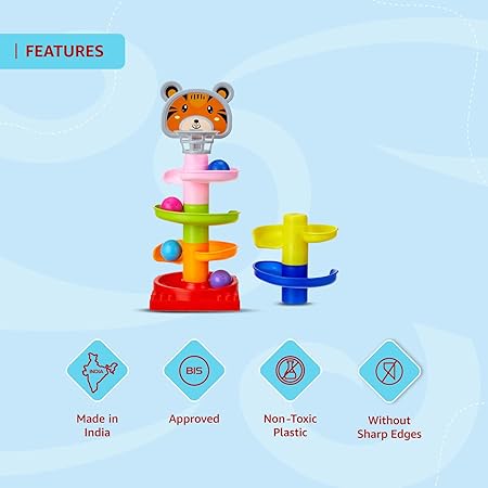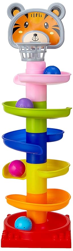 Amazon Brand – Jam & Honey | Rolling and Swirling Ramp Drop Toy for Kids | 5 Layers. 4 Balls