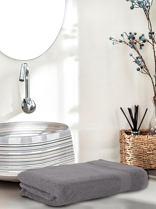 Amazon Brand – Solimo – Cotton Bath Towel | 500 GSM | Fade Resistant | Dark Grey