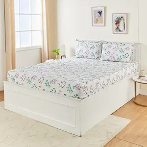 Amazon Brand – Solimo Elegant Floral 144 TC Cotton Double Bedsheet (Green)