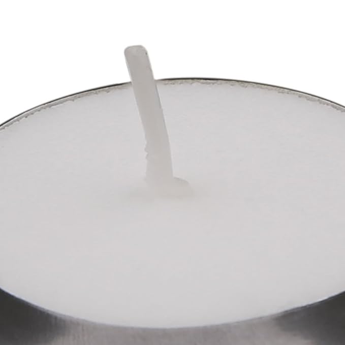 Amazon Brand – Solimo Wax Tealight Candles, 3-Hour Burn Time, Smokeless, No Residue (Set of 100, Unscented)