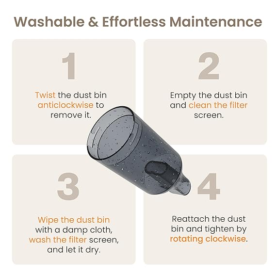 Ambrane 12kPA Powerful Suction 80W Wireless Hand Vacuum & Air Blower 2-in-1 Wireless Vacuum Cleaner, BLDC Motor HEPA Filter, Compact & Lightweight for Car, Home use, & Pet Hair (Mini Vac 02, Orange)