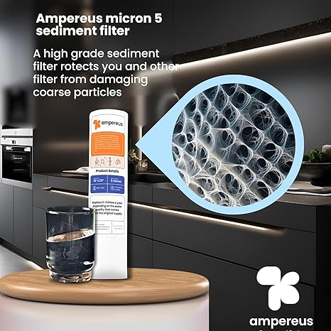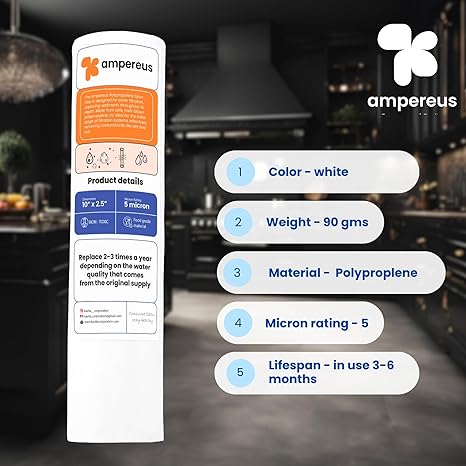 5 micron filter: Spun/pp filter, Reduces Sediments, Chlorine, odor and improves taste 5 Micron Filter 3-6 month Filter Life Universal Fit – fits inside most major brand systems