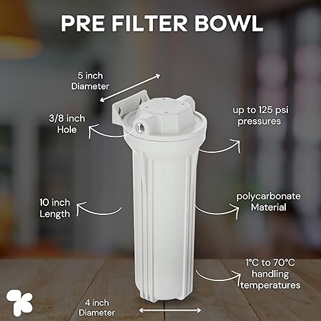 Includes: pre filter housing 2 Spun Filter, 1 Spanner and Telfon Kit Useful for old kent model and similar water purifier having 1/4″ fittings