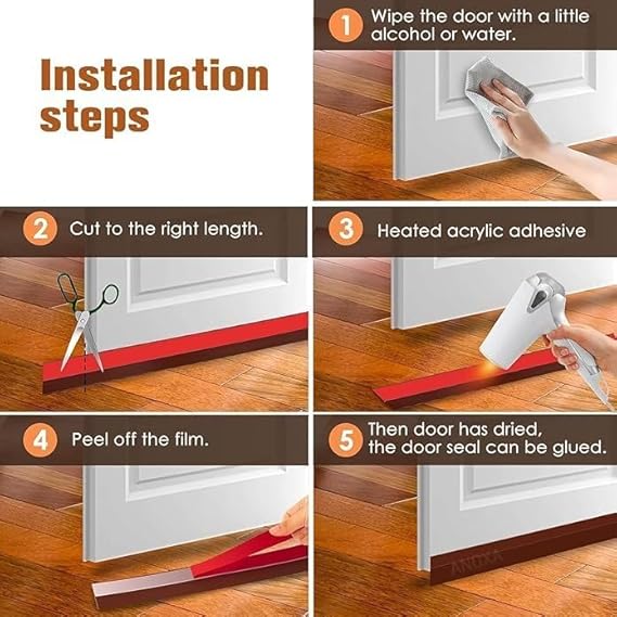 【INSTALLATION GUIDE】- 1)Measure the bottom of the door and cut the excess seal; 2)Clean and dry the surface; 3)Peel off the backing film; 4)Apply the strip to the door. Easy to install and stays in place. **Take on a couple of these steps and you will be amazed by the results!