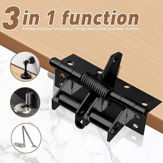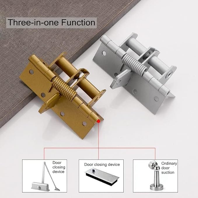 Material: Made of iron.It is a multifunctional hinge integrating door closer, door stopper and floor spring.