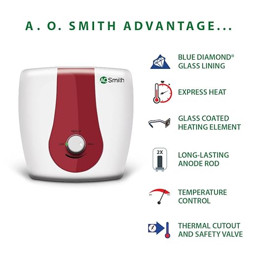 AO Smith SGS-GREEN SERIES-025 Storage 25 Litre 3KW Vertical Water Heater (Geyser) White Express Heat 5 Star