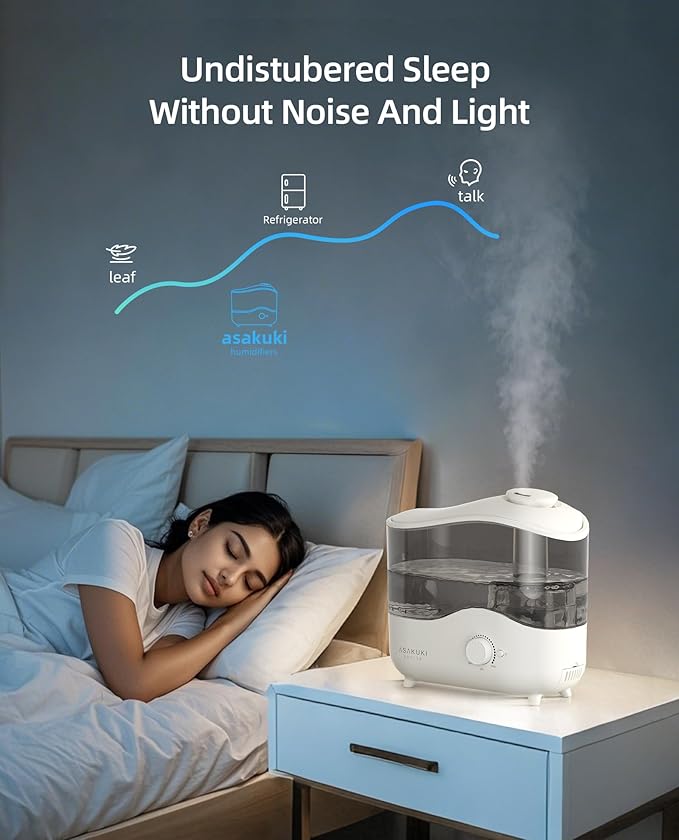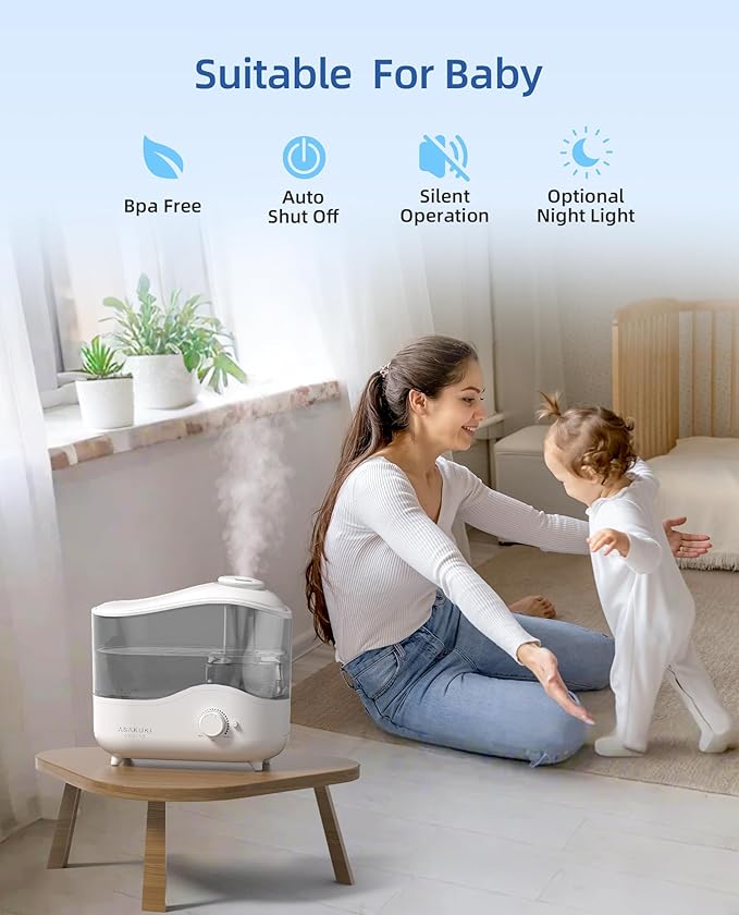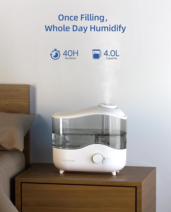 ASAKUKI Cool Mist Humidifiers for Bedroom – 4L Water Tank, Baby, Office, Quiet Ultrasonic Air Vaporizer, Adjustable Mist, 360 Nozzle Rotation, Auto-Shut Off, Humidifier Easy Fill and Clean -Grey