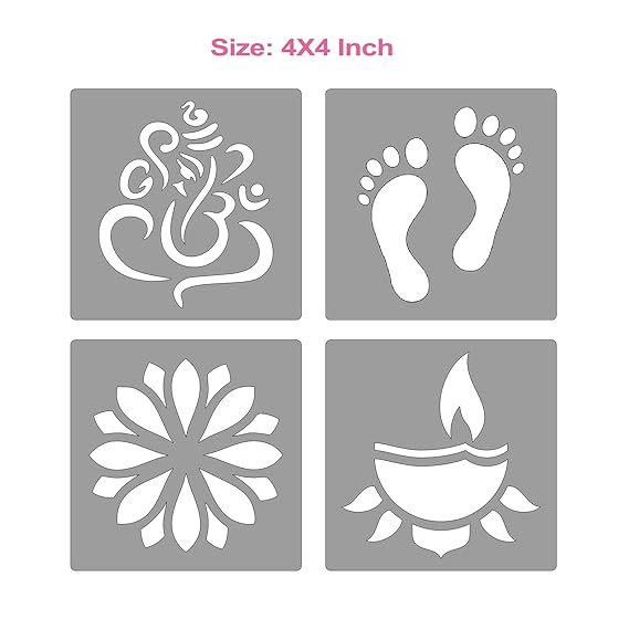 Package Contain: Set of 10 rangoli colours bottles 80g each. and 2 MDF Stencils of 4 inchX4 inch each. These rangoli color bottles provide a medium for your artistic expression during festive celebrations. They allow you to create intricate rangoli designs, patterns, and motifs, adding a touch of personal flair to your diwali decoration items. Let your creativity shine with these rangoli bottles!