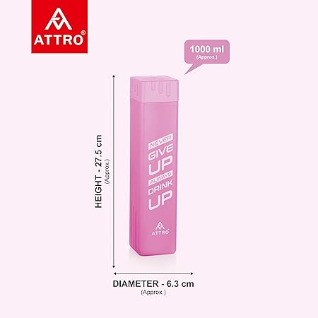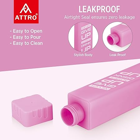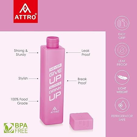 ATTRO Freezy Deluxe 900ml Plastic Water Bottle – Compact & Sleek Square Fridge Bottle, BPA-Free, Leak-Proof, Freezer Safe, Break Proof,Occupies Less Space Set of 2 Pink