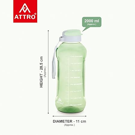 ATTRO Ultra Pro 2 Motivational 2-Liter BPA-Free Water Bottle with Leak-Proof Flip-Top Cap, Nylon Strap and Stylish Mint Green Color for Daily Hydration