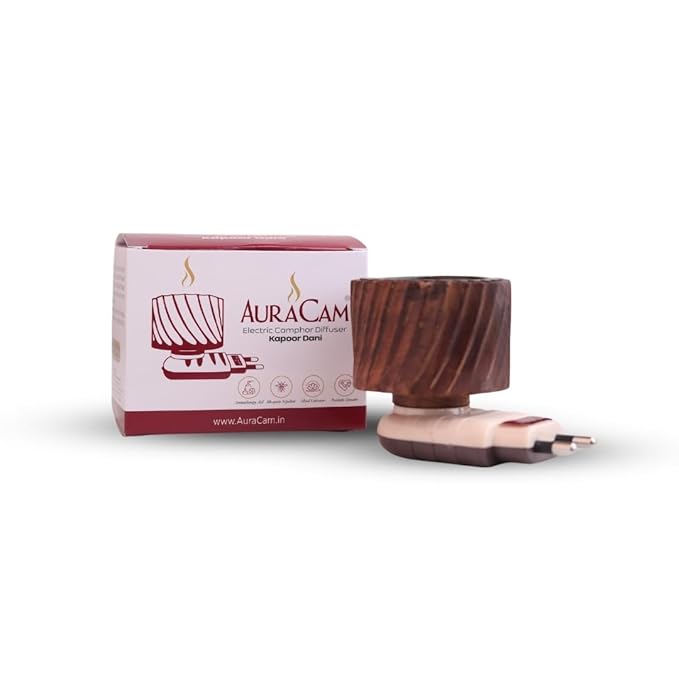 Auracam Camphor Burner/Essential Oil Diffuser/Bakhoor Kapoor Diffuser/Electric Diffuser for Fragrance/Kapur Dani for Pooja, Meditation, Havan/Kappor Stand for Home, Office (Pack of 1)