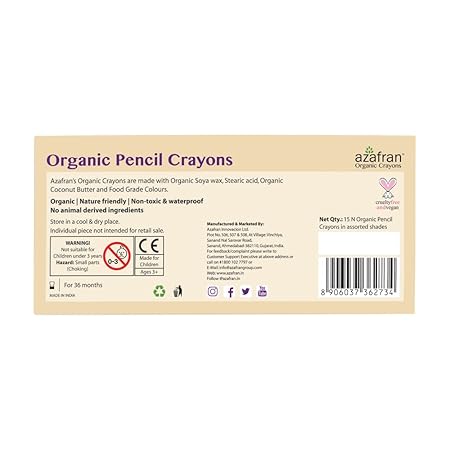 No Parabens, Sulphates, Mineral oils or artificial fragrance. Azafran crayons are made of organic soya wax, organic coconut butter and food grade colors. Organic, Natural Friendly, Non Toxic, Waterproof. Suitable for kids 3+ years.; Big Crayons are perfect for your little ones who are just starting to grasp and draw with crayons. Ideal to help kids develop imagination, creativity, color exploration, drawing, and school projects..
