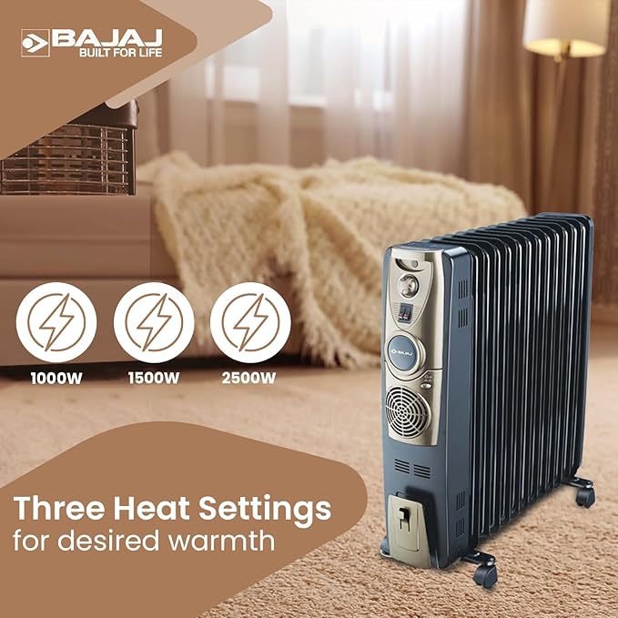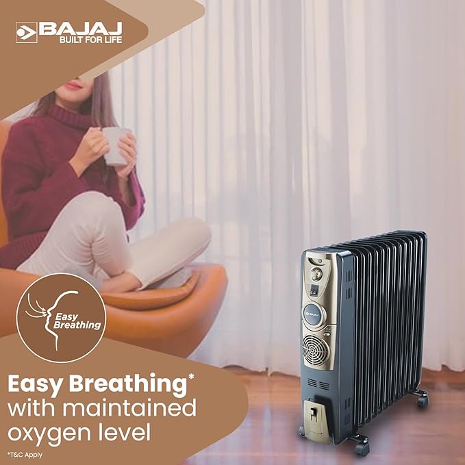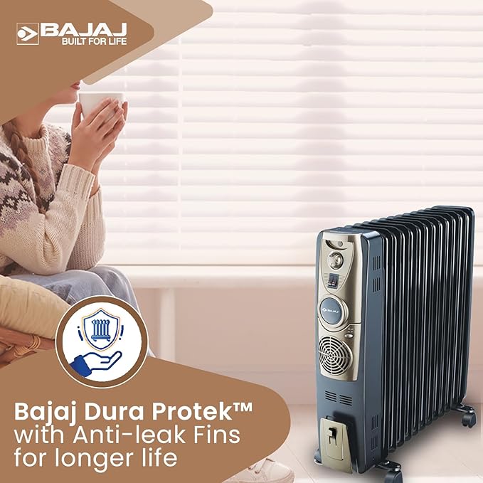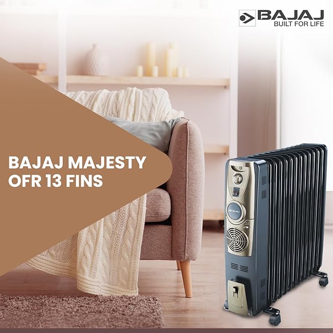 Bajaj Majesty OFR 13 Fin Plus 2900W Oil Filled Room Heater For Home|Easy Breathing*|DuraProtek™-Anti-leak fins|3-Yr Warranty By Bajaj|400W PTC Ceramic Fan Heater|3-Heat Setting 1000W/1500W/2500W|Black