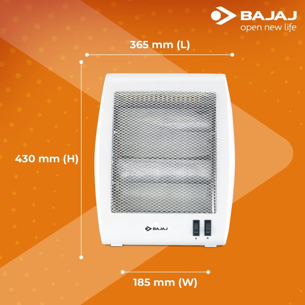 Bajaj RHX-2 Halogen Heater|2 Heat Settings-400W/800 Watts |Noiseless Operation|DuraElement ¢ With 1-Yr Heating Element Warranty by Bajaj|Convection Room Heater For Winter|2-Yr Warranty By Bajaj|White