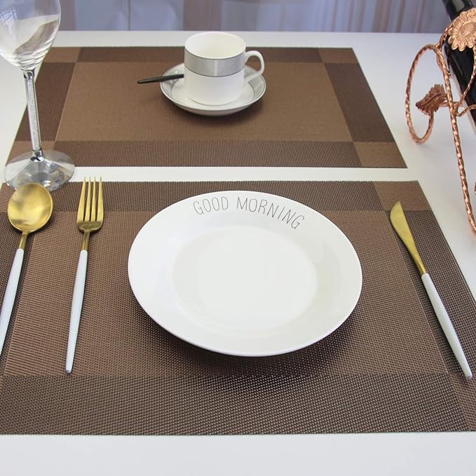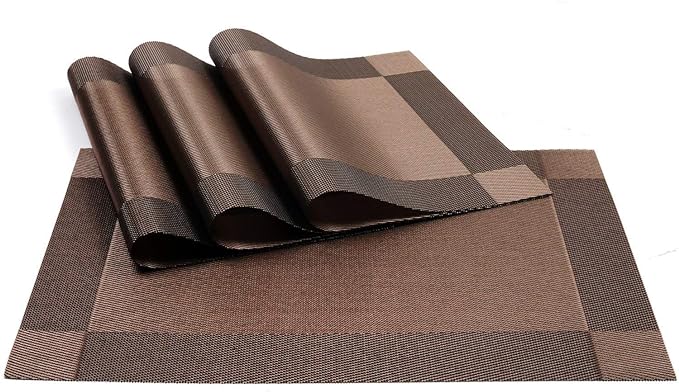 Baskety (Set of 4 PCS) Colorful Place Mats Dining Tablemates Washable Heat Resistant. (Brown)