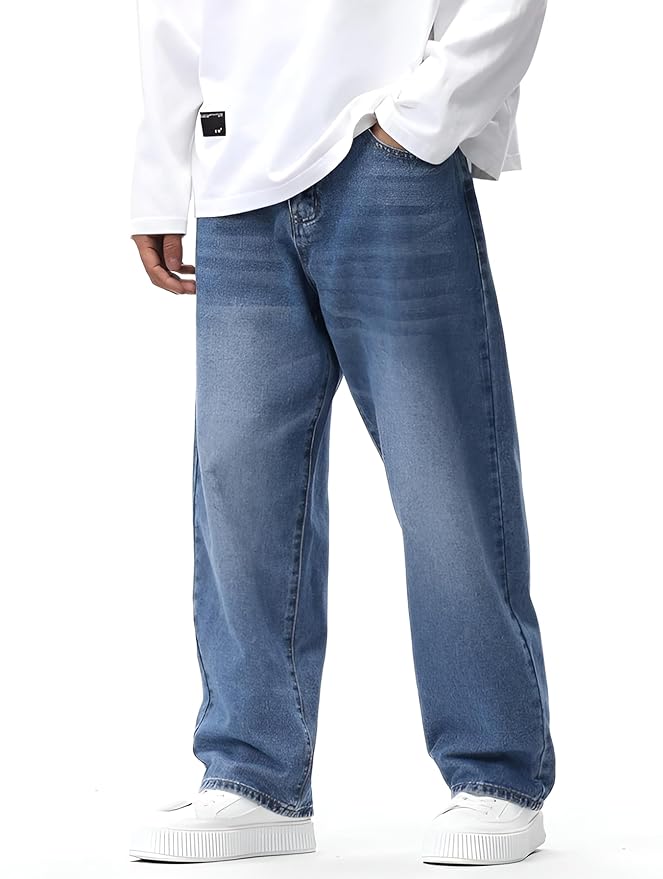Feature: This Baggy Fit Jeans for Men 1) Comfortable for all-day wear. 2) Casual and laid-back style. 3) side pockets for added functionality. 4) vailable in different washes and finishes.