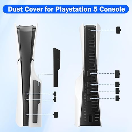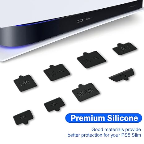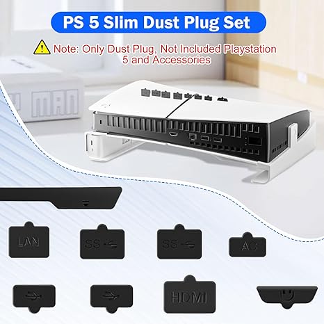 【 Fit for PS5 Slim 】: Specifically crafted for the PS5 Slim, this dust plug set is the ultimate PS5 slim cover to shield your console’s ports from dust and debris. Ensure your PlayStation 5 remains spotless and fully operational.