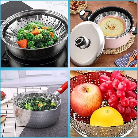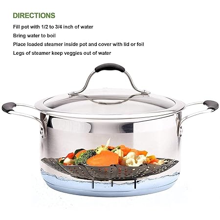 Big vegetable steamer basket premium stainless steel steamer basket folding collapsible steamer for vegetable cooking, baby food steamer, big and expandable fit various size pot