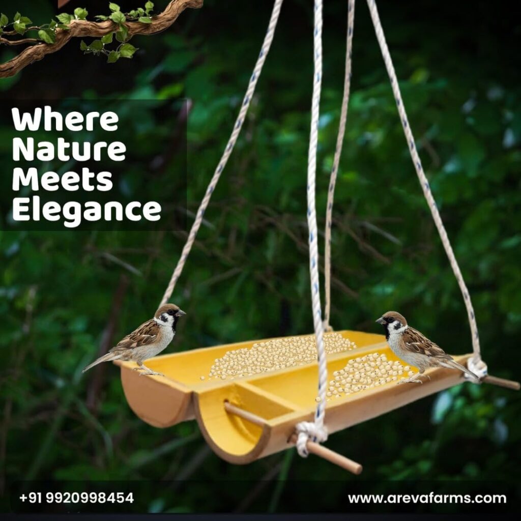 Bird Feeder | Areva Eco-Friendly Bamboo Bird Feeder | Bird Water Feeder Hanging | Bird Food Feeder | Bird Feeder Hanging for Balcony, Garden | Bird Feeder Hanging for Small Birds, (Natural)